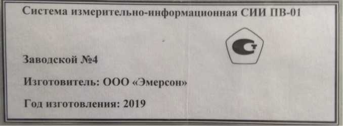 На лицевой панели шкафа с контроллерами крепится маркировочная табличка, на которой нанесено условное обозначение системы «СИИ ПВ-01», заводской номер в цифровом формате (4), знак утверждения типа.
