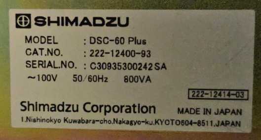 Калориметр дифференциальный сканирующий модификаций DSC-60 Plus, DSC-6OA Plus. Руководство по эксплуатации |