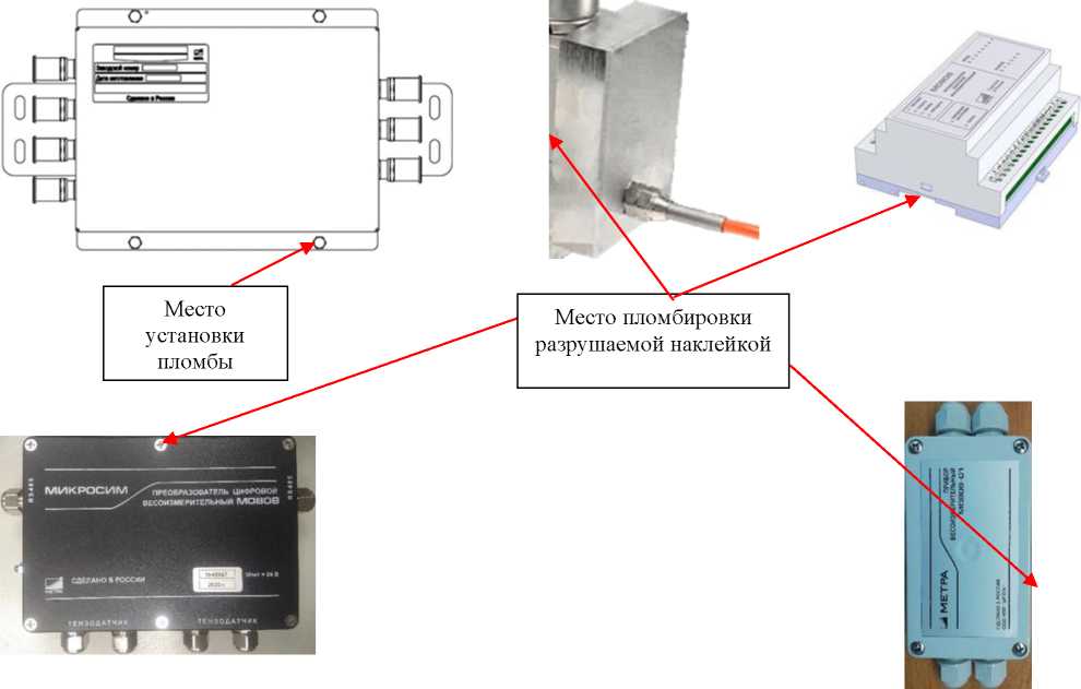 Места нанесения пломб для защиты от несанкционированного доступа приведены в описании типа на прибор весоизмерительный Микросим и на рисунках 6-8.