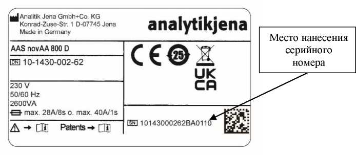 Рисунок 2 - Место нанесения серийного номера на спектрометр атомно-абсорбционный novAA 800