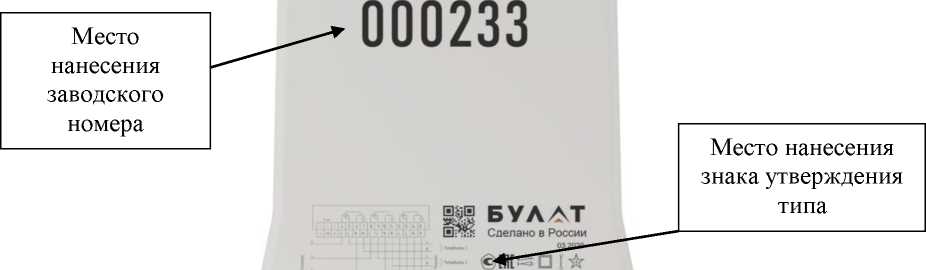 наносится на лицевую сторону корпуса счётчиков методом офсетной печати или другим способом, не ухудшающим качества, на титульный лист эксплуатационных документов типографским способом.