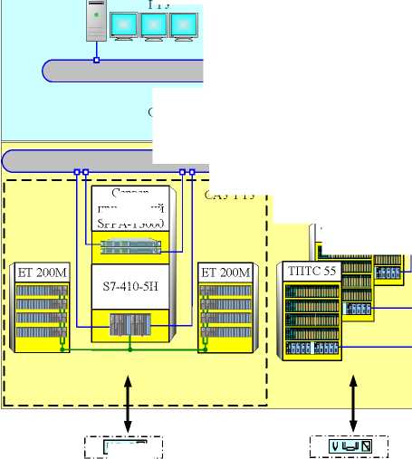 - дублированного процессора измерительного комплекса серии Simatic S7-400H, тип 410-5Н, обеспечивающего выполнение алгоритмов измерений, расчетов, управления и технологических защит при ведении технологического процесса ГТУ в составе энергоблока на основе принятой измерительной информации от измерительных модулей САУ ГТУ;