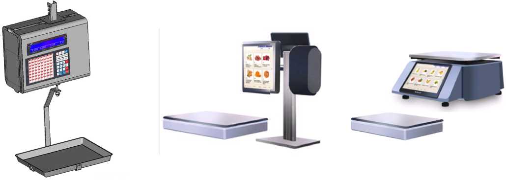 - дисплей оператора закреплен на корпусе весов, камера видеораспознавания закреплена на складной стойке, принтер встроен корпус весов, либо отсутствует (в обозначении весов индекс ВР);