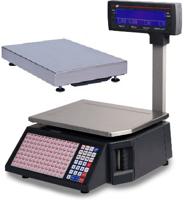 - дисплей оператора закреплен на корпусе весов, дисплей покупателя закреплен на корпусе весов посредством стойки принтер встроен в корпус весов, (в обозначении весов индекс Р);