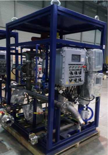 Насос может устанавливаться на раме установки или отдельной раме, так же предусмотрено использование внешнего насоса. Управление расходом жидкости осуществляется с помощью управляемой запорно-регулирующей арматуры: поворотного дискового затвора и/или шарового крана и/или электромагнитного клапана, а также с помощью изменения оборотов насоса (опционально).