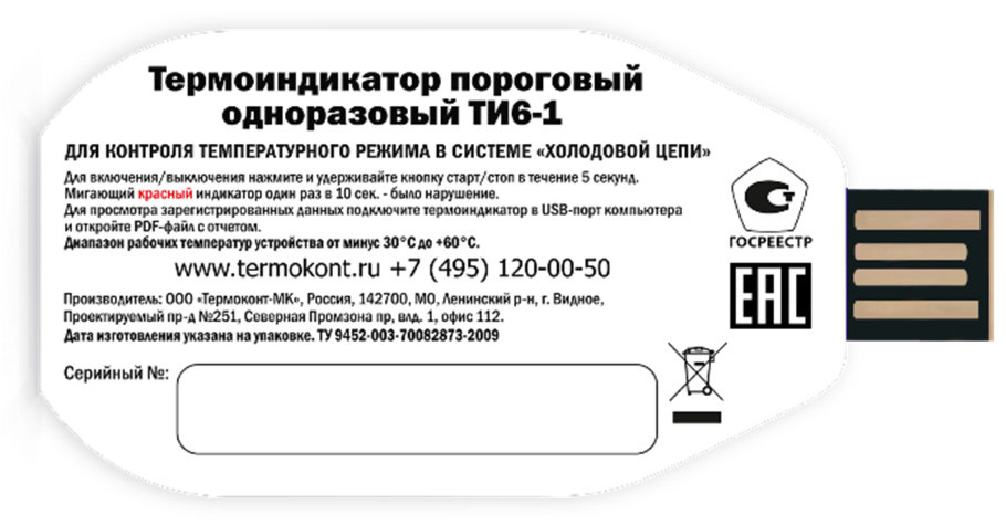 Термоиндикаторы пороговые одноразовые ТИ6-1