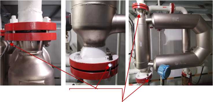 Для исключения возможности несанкционированного вмешательства, которое может повлиять на результат измерений, на фланцевых соединениях и электронном преобразователе модели 2700 СРМ предусмотрены места для установки пломб. Пломбировка осуществляется нанесением знака поверки давлением на пломбы, установленные на контровочных проволоках, пропущенных через отверстия в шпильках, расположенных на диаметрально противоположных фланцах, и контровочной проволоке, ограничивающей доступ в электронный преобразователь модели 2700, согласно рисунку 2.