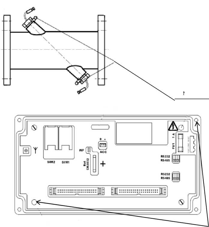 Ультразвуковой преобразователь расхода (далее - УПР) состоит из измерительного участка и двух ПЭП. Принцип действия основан на методе измерения расхода воды при помощи ультразвукового зондирования, при котором ультразвуковые колебания, возбуждаемые электроакустическими преобразователями, распространяются в измеряемой среде по и против направления потока.