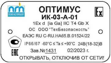 Маркировка взрывозащиты: - для оптического инфракрасного сенсора ИК (ПГО) - для оптического инфракрасного сенсора ИК (ПГО) (исполнение IoT) - для электрохимического сенсора ЭХ (ПГЭ) |