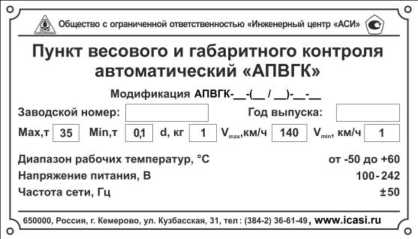 ТУ 28.29.31-039-10897043-2018 Пункты весового и габаритного контроля автоматические «АПВГК». Технические условия