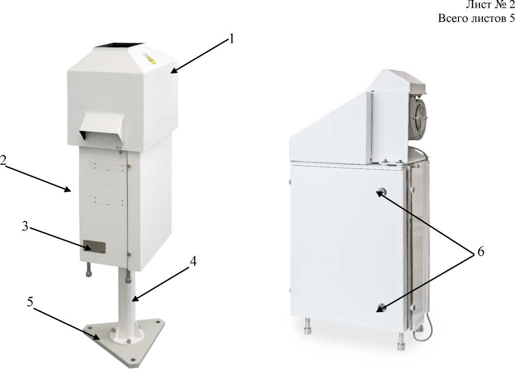 Рисунок 1 - Общий вид измерителей облачности СД-02-2006 с указанием составных частей, а также с указанием места нанесения заводского номера и знака утверждения типа и места расположения замков