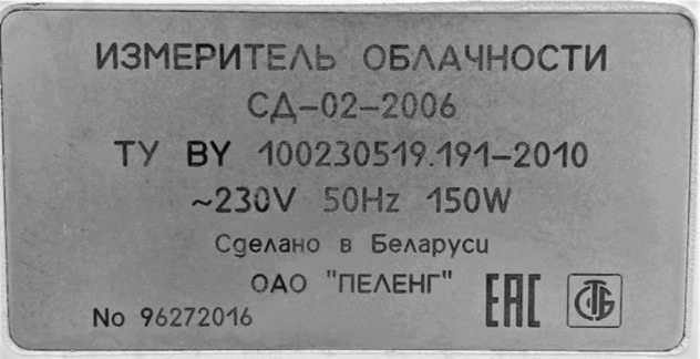Технические условия ТУ By 100230519.191-2010 «Измерители облачности СД-02-2006. Технические условия».