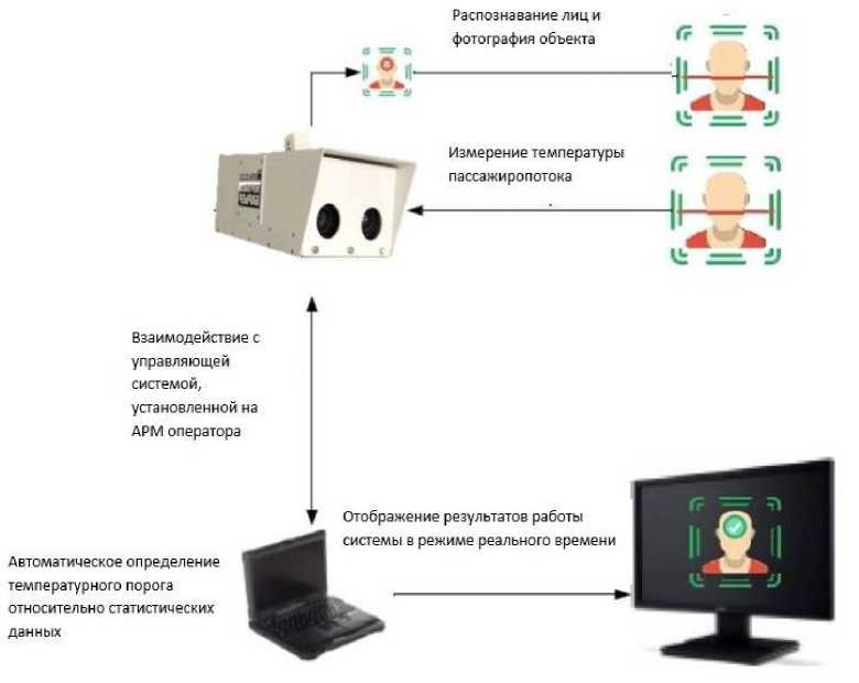- видеокамера, позволяющая идентифицировать человека с повышенной температурой, а также делает фото- и видеозапись человека с повышенной температурой;