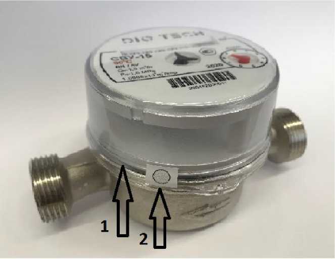 Рисунок 2 - Схема пломбировки от несанкционированного доступа (2) и обозначения места нанесения знака поверки (1)