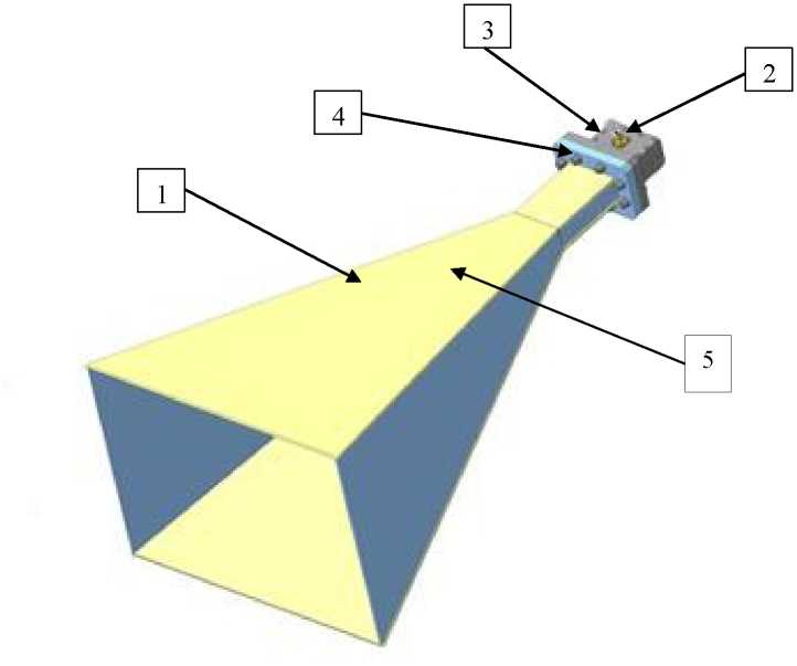 К присоединительному фланцу пирамидального рупора присоединен коаксиальноволноводный переход с соединителями следующих типов: