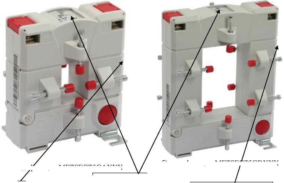 Трансформаторы METSECT5G* и METSECT5H* отличаются друг от друга видом сердечника и геометрической формой окна для шины и выпускаются в следующих модификациях, отличающихся номинальными первичными токами, вторичными нагрузками и массогабаритными характеристиками: METSECT5GAXXX, METSECT5GDXXX,