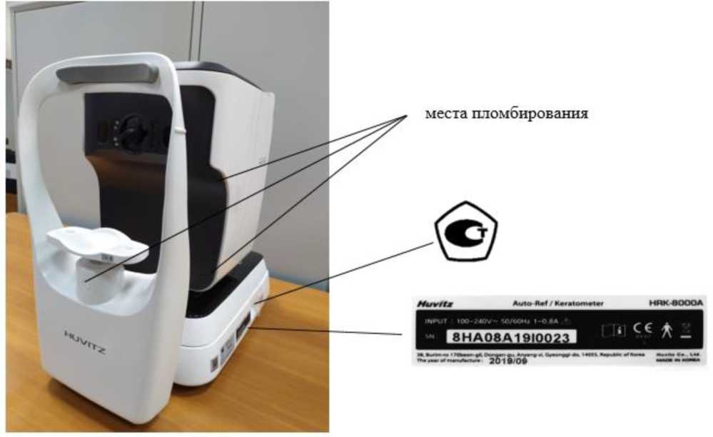 Общий вид, схема маркировки и схема пломбирования от несанкционированного доступа авторефкератометров представлены на рисунках 1 и 2.
