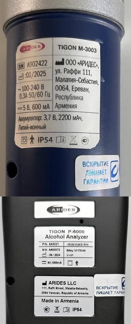 Анализаторы паров этанола в выдыхаемом воздухе Tigon