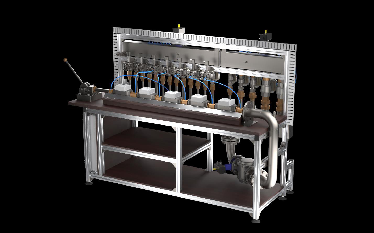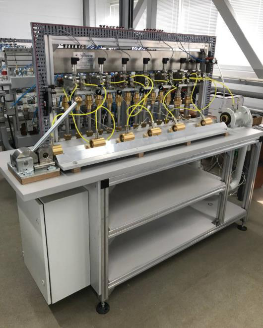 Клапанно-сопловой блок предназначен для обеспечения и поддержания необходимого расхода воздуха согласно технической документации поверяемого средства измерений. В состав клапанно-соплового блока входит набор критических сопел, соединительные магистрали, пневматические клапаны, входной и выходной коллекторы. Работа пневматических клапанов осуществляется посредством сжатого воздуха, подаваемого из компрессора или централизованной линии. Для создания требуемого расхода и поддержания необходимой величины разряжения за критическими соплами применены вакуумные насосы.