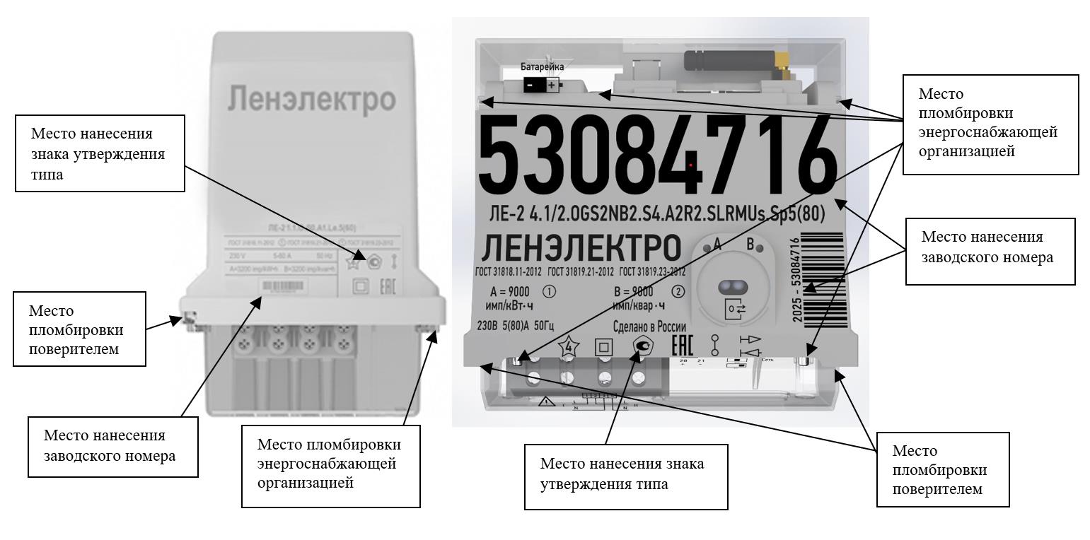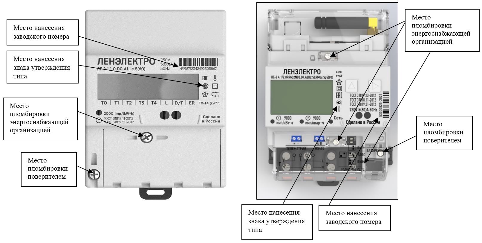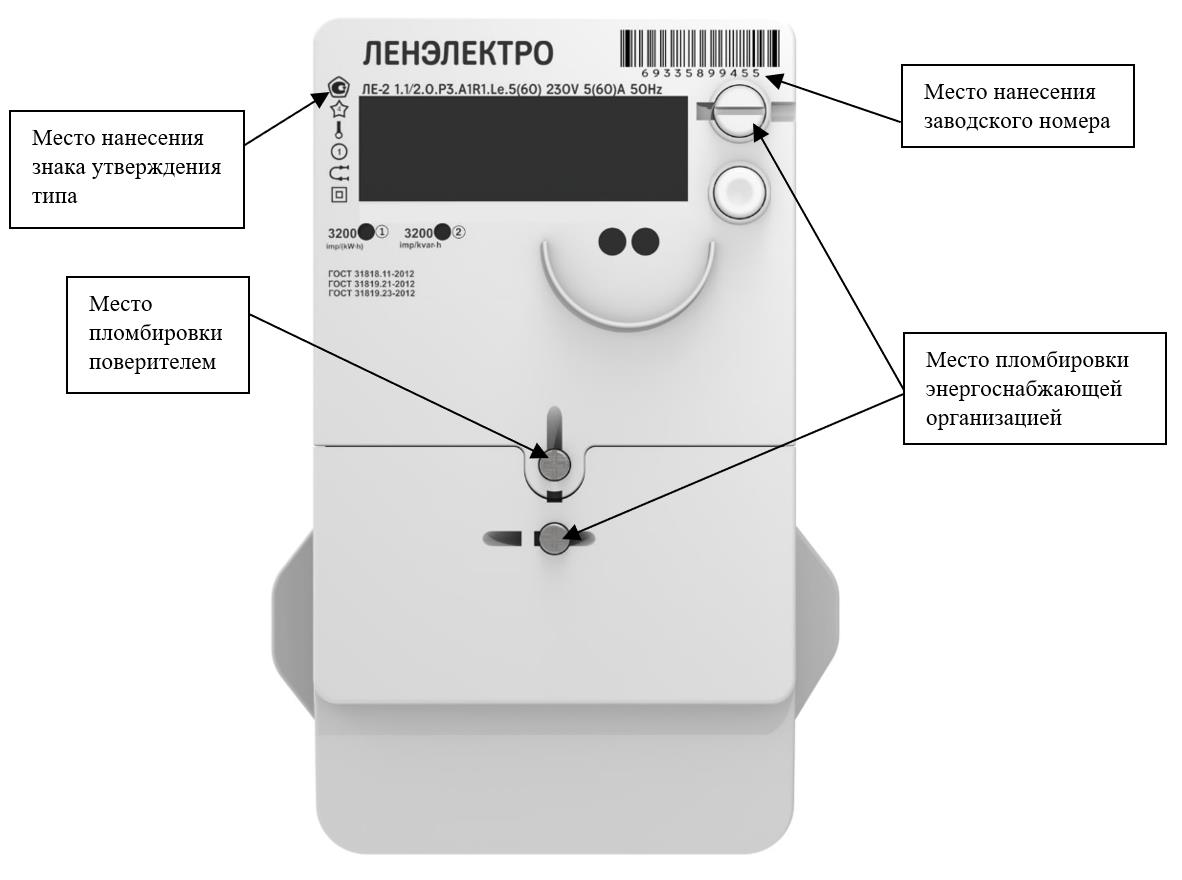 наносится лазерной гравировкой на лицевую панель счетчика или щиток счётчика офсетной печатью (или другим способом, не ухудшающим качества), на титульный лист руководства по эксплуатации и паспорт типографским способом.