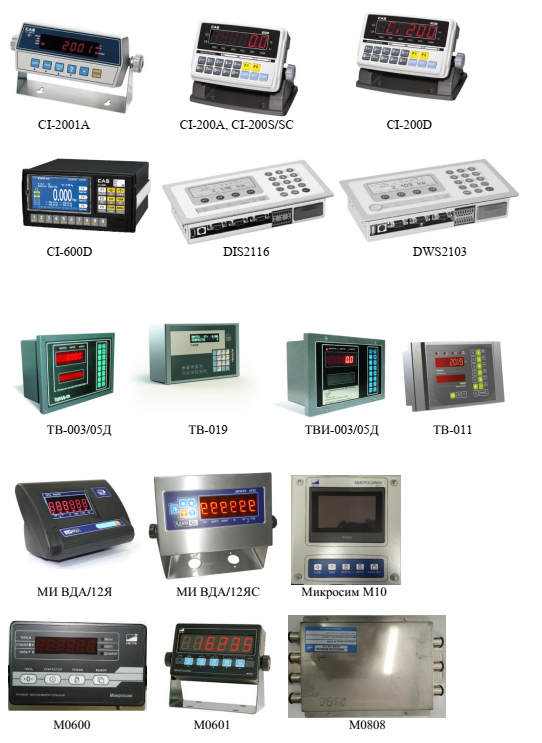 - весоизмерительного прибора (индикатор по Т.2.2.2 ГОСТ OIML R 76-1-2011 или терминал по Т.2.2.5 ГОСТ OIML R 76-1-2011).