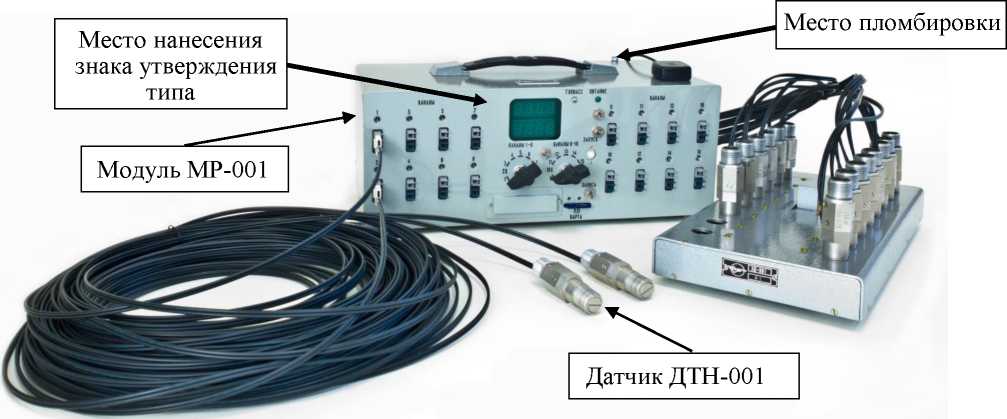Конструктивно аппаратура состоит из 16-ти датчиков наведённых токов (далее -датчик ДТН-001), модуля регистрации (далее - модуль МР-001), 16-ти оптических соединительных кабелей и антенны ГЛОНАСС/GPS.