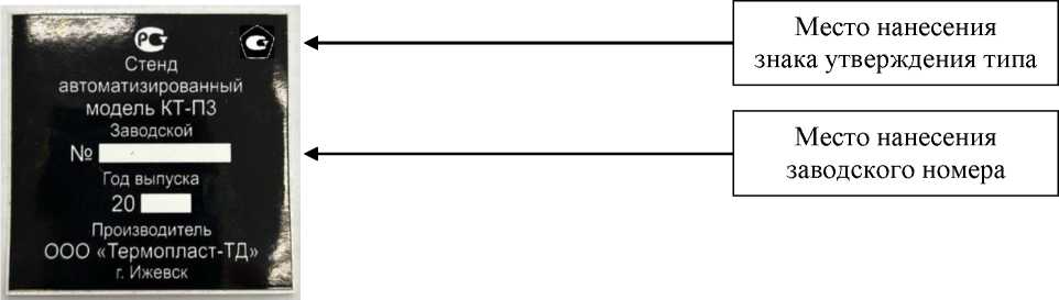 Общий вид маркировочной таблички стендов с указанием мест нанесения заводского номера и знака утверждения типа представлены на рисунке 2.