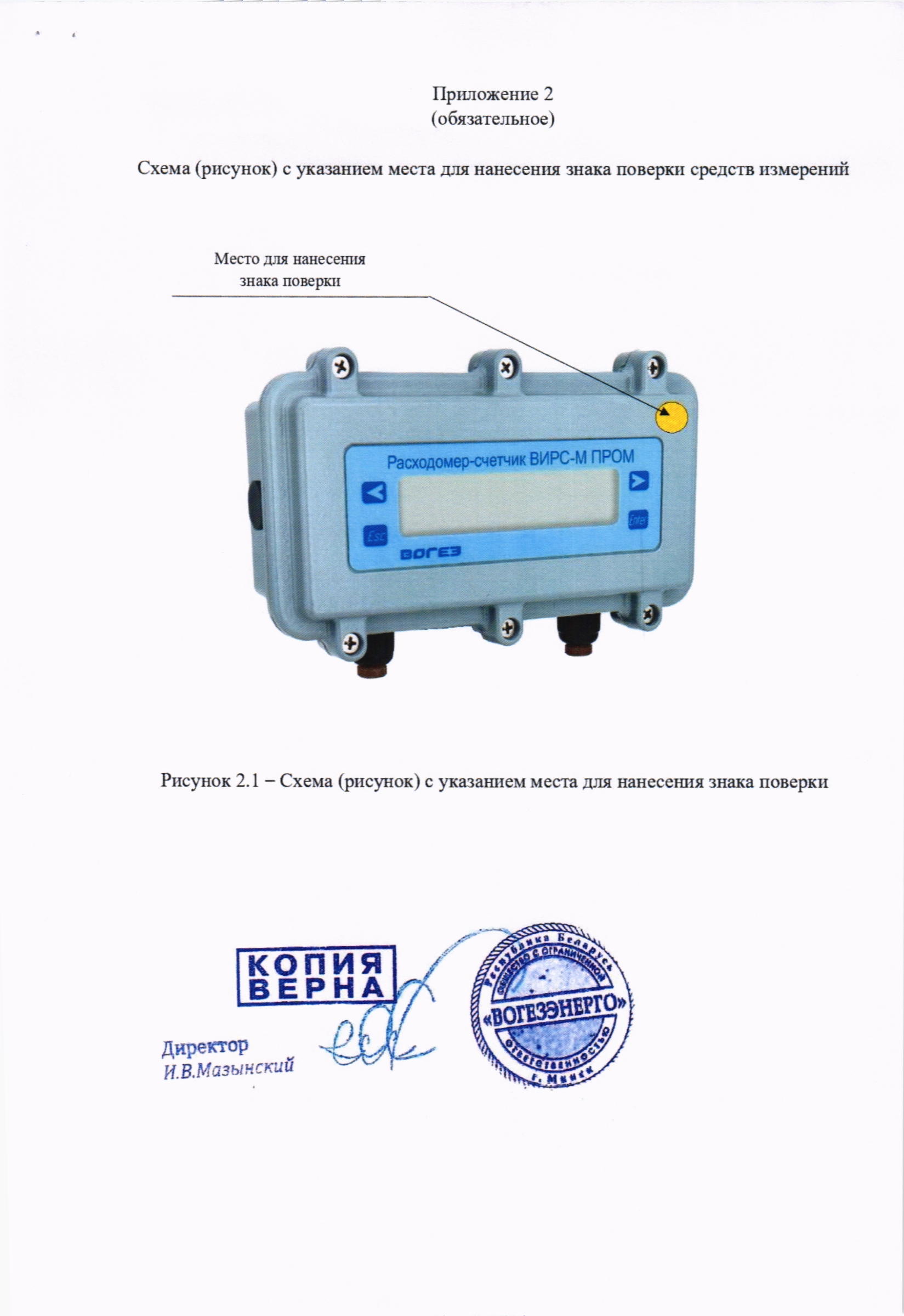 Схема (рисунок) с указанием места для нанесения знака поверки средств измерений представлена в приложении 2.