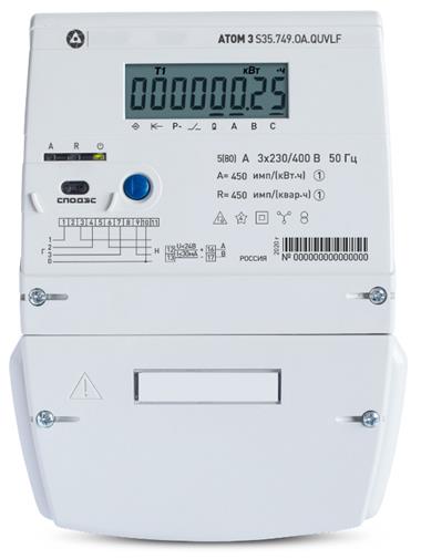Счетчики электрической энергии статические трехфазные многофункциональные АТОМ 3 (далее - счетчики) предназначены для измерения и учета активной и реактивной (или только активной) в трехфазных трех- и четырехпроводных сетях переменного тока энергии прямого (или только прямого) и обратного направлений, измерений параметров сети: среднеквадратических значений напряжения и силы переменного тока, частоты сети, коэффициента мощности, угла фазового сдвига между фазными напряжениями и токами основной частоты, а также измерений показателей качества электрической энергии в рабочем диапазоне счетчика: отклонения основной частоты напряжения электропитания, установившегося отклонения напряжения, длительности и глубины провала напряжения, длительности и величины перенапряжения.