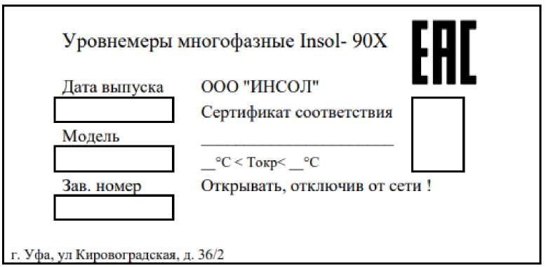 Рисунок 2 - Общий вид информационной таблички на корпусе уровнемера Insol-90Х