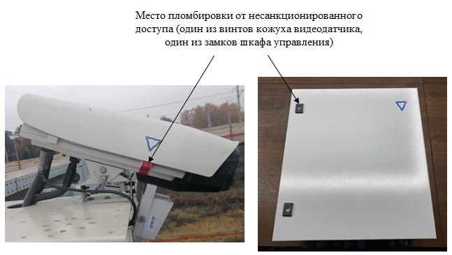 Место пломбировки от несанкционированного доступа (один из винтов кожуха видеодатчика, один из замков шкафа управления)