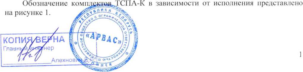 Рисунок 1 - Обозначение комплектов ТСПА-К в зависимости от исполнения