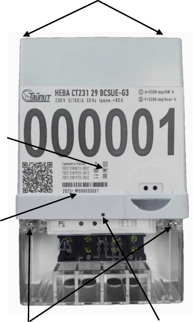 Счетчики оснащены электронными пломбами корпуса, крышки клеммной колодки и коммуникационного отсека, датчиком магнитного поля, датчиком ВЧ поля (опционально), оптическим портом по ГОСТ IEC 61107-2011, различными коммуникационными модулями (опционально).