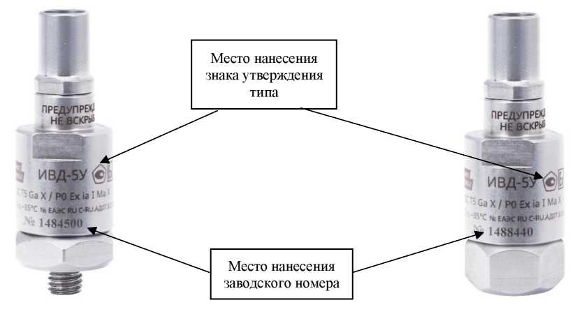 Знак утверждения типа, название исполнения и заводской номер наносятся на корпус датчика методом лазерной гравировки.