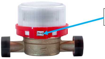 наносится в нижнюю часть лицевой панели счетчиков с механическим счетным устройством и электронным вычислителем, и в верхнюю часть лицевой панели счетчиков с заменяемым элементом питания флексографическим способом, а также в верхний левый угол титульного листа руководства по эксплуатации типографским способом.