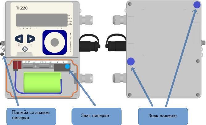 Схема пломбировки от несанкционированного доступа и место нанесения знака поверки представлены на рисунке 3.