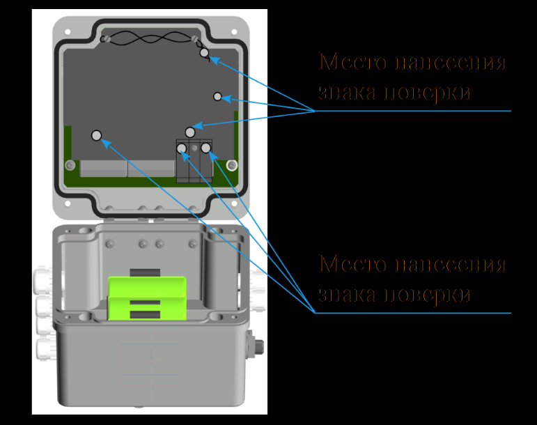 Рисунок 3 - Схема пломбировки от несанкционированного доступа, обозначение мест нанесения знака поверки