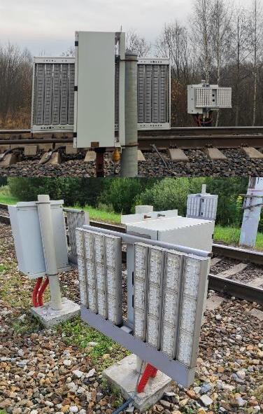 Напольное оборудование состоит из одного или двух устройств фотофиксации и подсветки зон контроля (расположенных с одной или с обеих сторон железнодорожного пути), шкафа коммутации и управления.