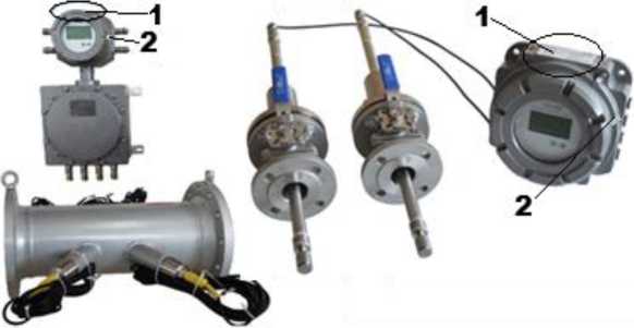 Расходомеры-счетчики модели UGS 300 включает в себя один, два или четыре врезных приемопередающих блока (один или два акустических канала), для передачи, приема и обработки ультразвуковых импульсов и БОС. В зависимости от конфигурации может включать готовый измерительный участок трубопровода (корпус).