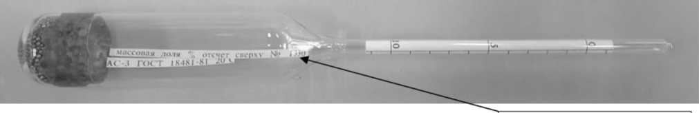 На стержне ареометров модификаций АНТ-1, АН, АМ, АСП-1 и АСП-2 на уровне верхнего дополнительного деления нанесена контрольная отметка.
