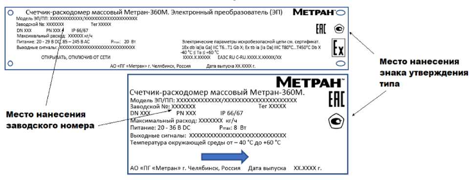 Заводской номер расходомеров, состоящий из арабских цифр, наносится методом, принятым на заводе-изготовителе, на маркировочные таблички, расположенные на ПП и ЭП.
