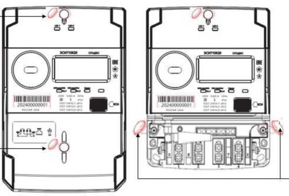 Рисунок 2 - Схема пломбировки с указанием мест ограничения доступа к местам настройки (регулировки)