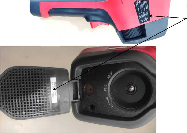 Заводской номер, идентифицирующий каждый экземпляр средства измерений, в виде буквенно-цифрового обозначения наносится на информационную табличку (этикетку) тепловизора методом лазерной печати.