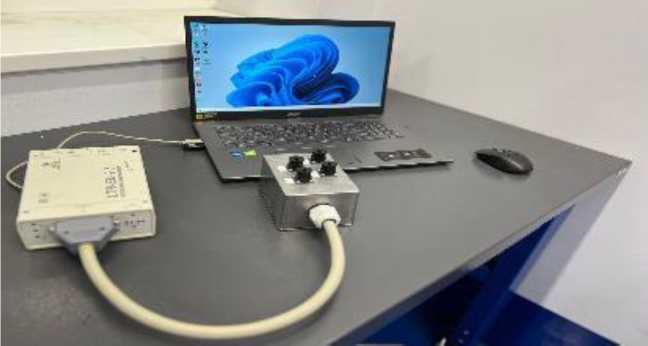 Принцип действия ИК напряжения постоянного тока на мобильном АРМ технологического комплекта основан на измерении аналогового электрического сигнала напряжения постоянного тока от тензорезисторного полного моста, преобразования значений напряжения в цифровой сигнал и передачи в ПК для визуализации. Сигнал напряжения постоянного тока от тензорезисторного полного моста по шестипроводной схеме передается по кабельной сети на устройство подключения сигналов, далее в АЦП для преобразования с последующей передачей в ПО для обработки, визуализации, архивирования и хранения. Результаты измерений отображаются на экране ноутбука мобильного АРМ технологического комплекта.