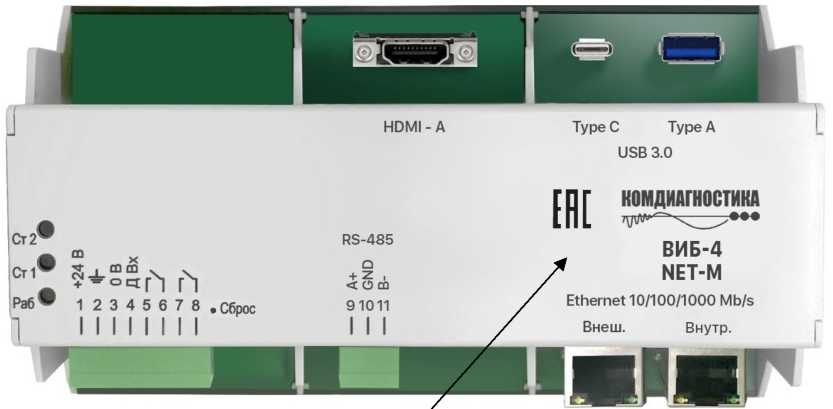 наносится на титульный лист паспорта и руководства по эксплуатации типографским способом и на корпус ВИБ-4.