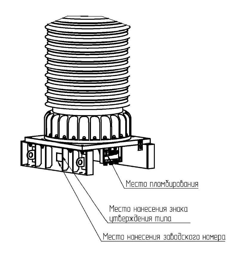 Общий вид трансформаторов, место нанесения заводского номера, место нанесения знака утверждения типа и место пломбирования приведены на рисунке 1.