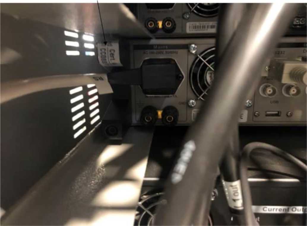 Защита от несанкционированного доступа к внутренним к частям и элементам выполнена путем нанесения защитной пломбы в виде наклейки на заднюю панель корпуса эталонного счетчика RS 2330A и трехфазного генератора сигналов SG 2330B. Место пломбирования от несанкционированного доступа представлено на рисунке 3.