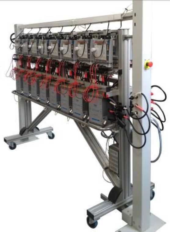 Конструктивно установка выполнена в специальной приборной стойке с присоединяемыми к ней стационарными или мобильными, выполненными в виде перекатных рам, посадочными местами для счетчиков. Установка представляет собой многофункциональное рабочее место и позволяет одновременно обрабатывать до 96 однофазных или 64 трехфазных счетчиков электрической энергии.