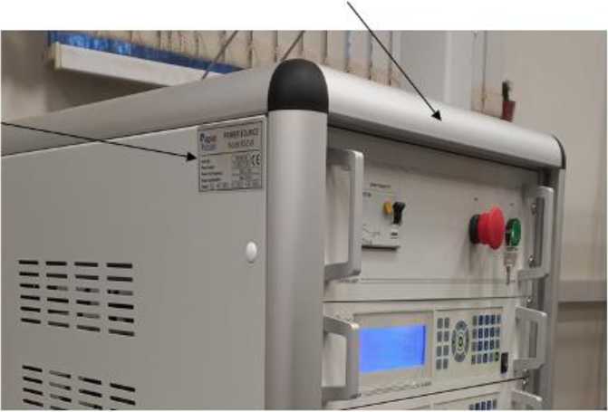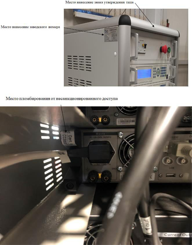 Защита от несанкционированного доступа к внутренним к частям и элементам выполнена путем нанесения защитной пломбы в виде наклейки на заднюю панель корпуса эталонного счетчика RS 2330A и трехфазного генератора сигналов SG 2330B. Место пломбирования от несанкционированного доступа представлено на рисунке 3.