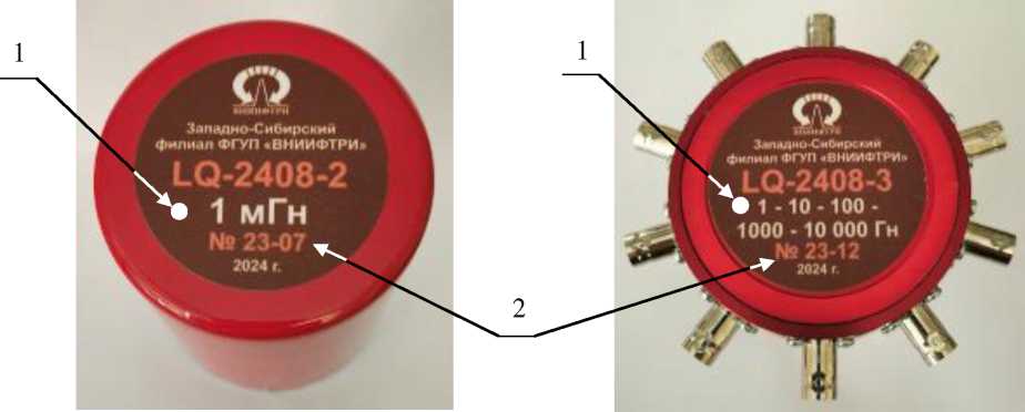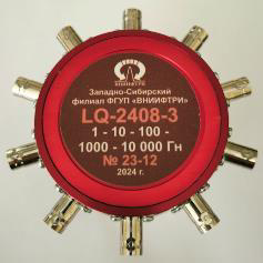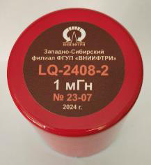 - мера LQ-2408-3 выполнена в цилиндрическом корпусе из алюминиевого сплава на акриловой подставке и имеет 10 коаксиальных разъемов на боковой поверхности (трёхзажимное подключение). Номинальные значения индуктивности меры LQ-2408-3: 1 Гн, 10 Гн, 100 Гн, 1000 Гн, 10000 Гн и номинальные значения электрической добротности от 1 до 100 единиц, в диапазоне частот от 100 Гц до 10 кГц.